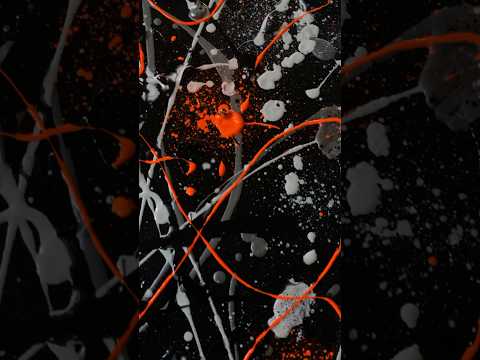 I used action painting with a bold colour palette of bright white, metallic silver grey, black and neon orange. This painting is textured and exudes a lively, fiery energy that has a bold impact.